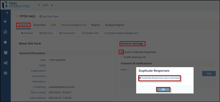 Steps to Enable the Restrict Duplicate Responses, follow these steps: