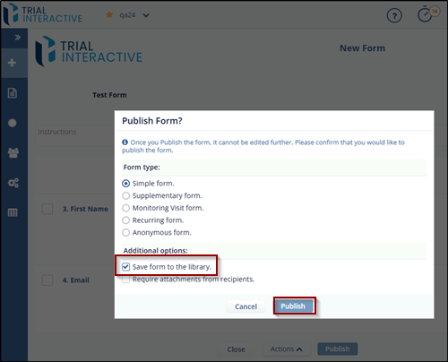 This allows you to save the published form to the library. You can view and open these forms to send for the response from a library. Refer to the screenshot below.