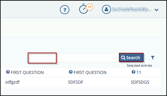 Users can search for specific form reports by entering the recipient's name in the search box above the report table and clicking the Search icon.