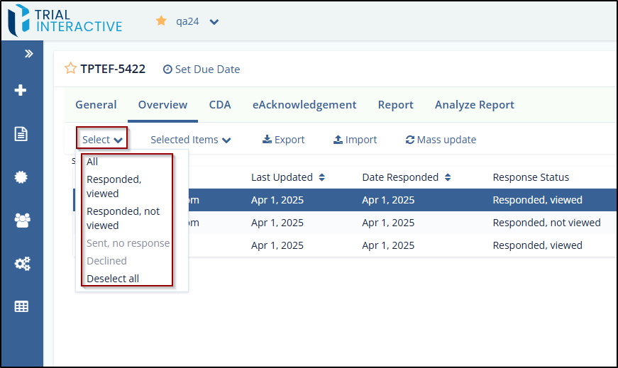 - Select a specific status (e.g., Responded, viewed) to filter the list accordingly.