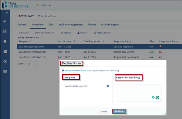 - Reason for Declining: A long text field to enter the reason for declining the form.