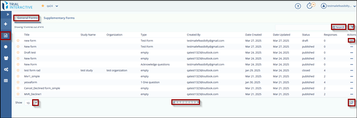 The Form Dashboard displays a list of all Published, Draft, and Closed Forms, and provides the following actions: