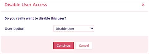 - On the Change User Access screen, click on the User option dropdown and select the Disable User option.