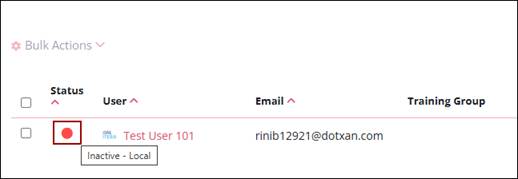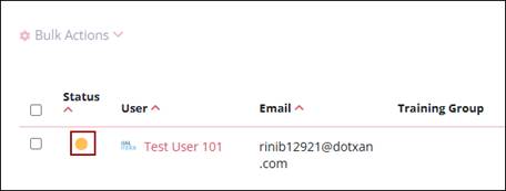 - The status column will display a yellow dot indicating the user's training is suspended