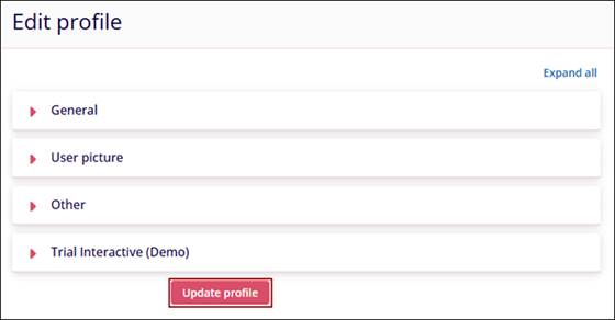 - Make the required changes on the Edit profile screen and click on the Update