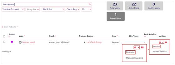 - Click on the Actions dropdown of an Invited User.