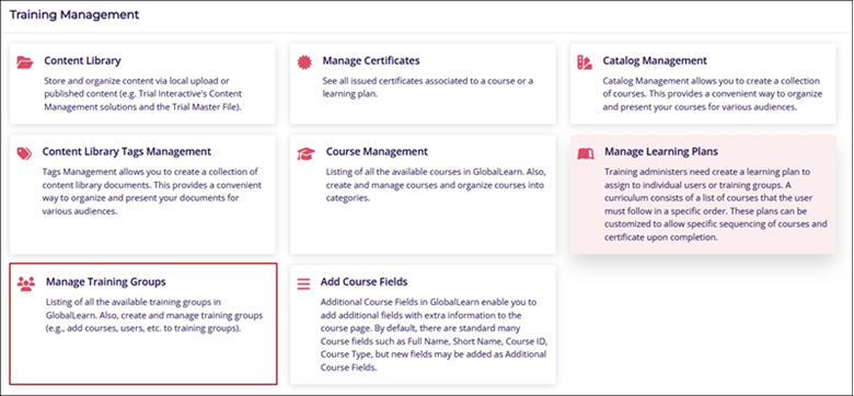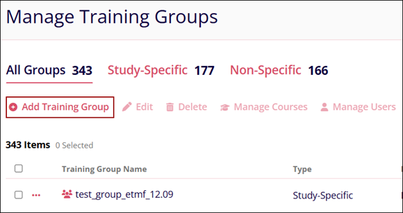 - Click on the +Add Training Group button on the Manage Training Groups screen.