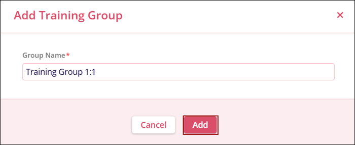 - Provide a suitable name for the training group on the Add Training Group screen and click