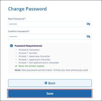 Re-enter the same password in the Confirm Password* field. Click on the Save button