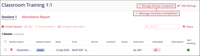 If Mark All Completed & Save is selected, all sessions will be marked as Completed and cannot be edited.