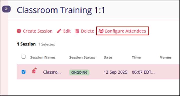 - To Edit the session, select the session by clicking on the checkbox and click on the Edit option.