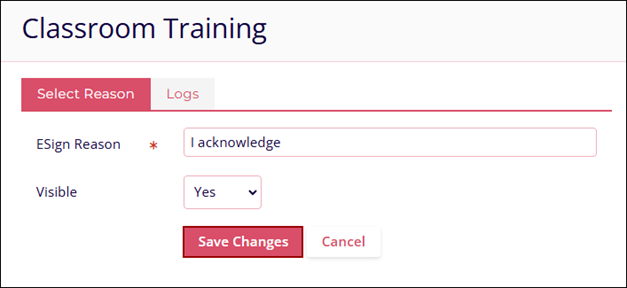 - To Edit and Delete the Classroom Training reason, follow the standard steps detailed in the Edit a Reason and Delete a Reason sections.