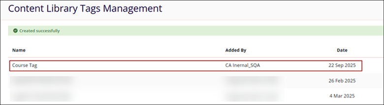 - From the left-hand navigation links select Company Dashboard > Training Management > Content Library Tags Management.