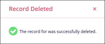 - Upon successful deletion, the system shows the success message in the Record