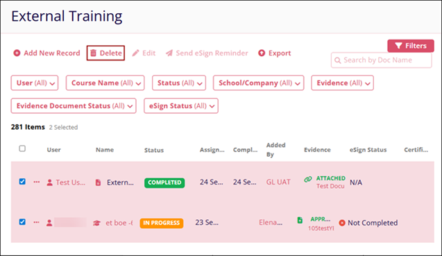 - Select the required number of records by clicking the user’s name checkboxes.