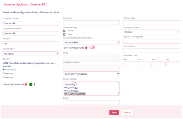 - On the Edit Course screen, make the required edits and click on the Save