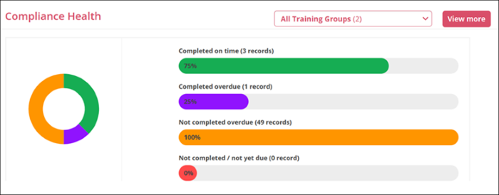 The Compliance Health dashlet can be filtered by Training Groups.