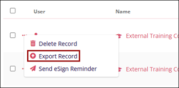 - Click on the horizontal ellipsis icon for the particular user and select the Export