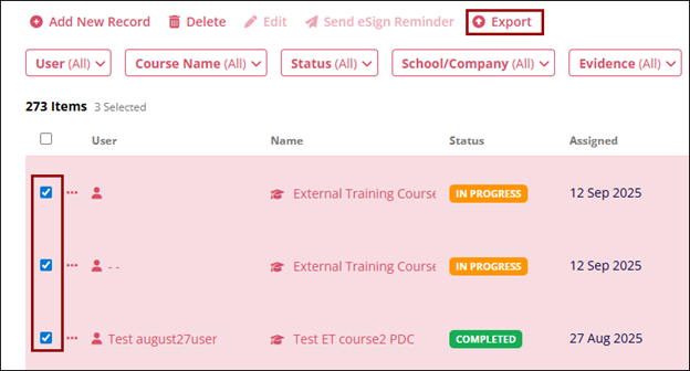 - Select the required number of records by clicking on the user’s name checkboxes.