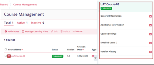 - If any changes are to made to a course after at least one user has accessed it, an SD ticket must be raised to update the course configuration.