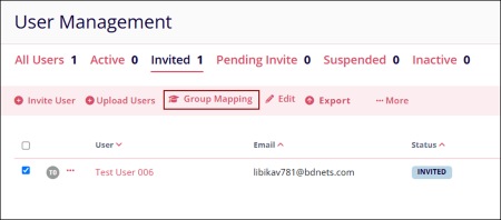 - On the User Management page, select a user and click on the ‘Group Mapping’