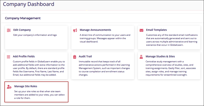 Users with the necessary permissions can use the Manage Site Roles feature to create site roles and assign them to team members when adding them to sites.