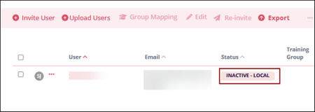 - Once disabled, the user displays the status of ‘Inactive-Local’