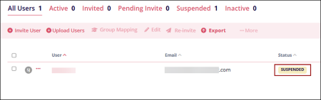 - Users with suspended training are displayed with the ‘Suspended’