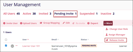 - Select a user(s) with ‘Pending Invite’ status.