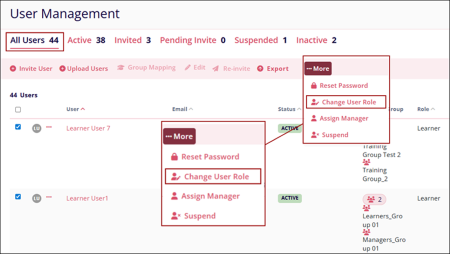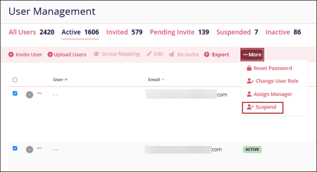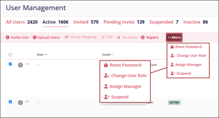 - Select multiple users on the User Management page and click on the ‘…More’ dropdown.