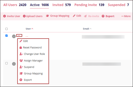 - To perform these actions for individual users, click on the horizontal ellipsis