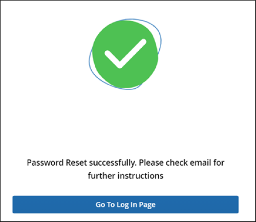 - The Password Reset screen displays the success message and prompts users to check