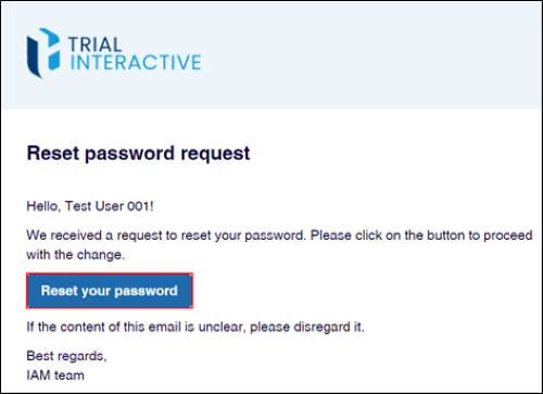 - Click on the Rest your Password button in the Rest Password Request email.