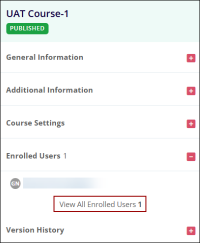 - Expand the Enrolled Users section and select the View All Enrolled Users option with the