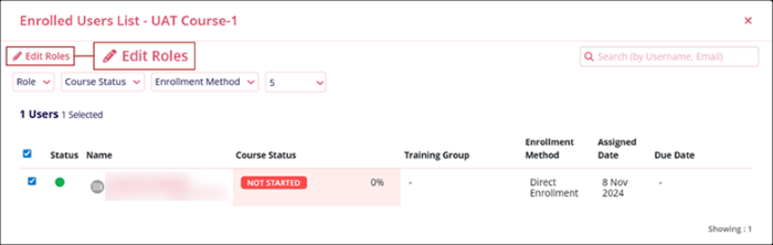 - On the Enrolled Users List screen, select the user and click on the Edit Roles