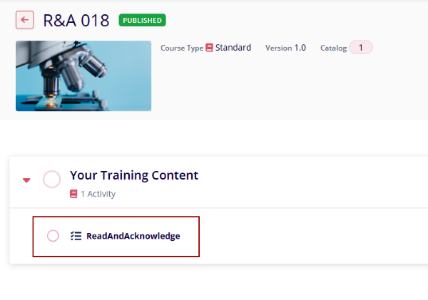 The Read and Acknowledge course has a preconfigured read and acknowledge attestation. Additionally, users can upload training content and other eLearning activities.