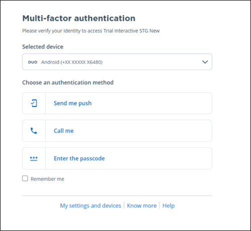 - Select the Send me Push option and click on Approve on the DUO Mobile app.