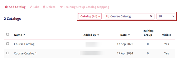 - Enter the catalog name in the Search by Catalog Name search box to search for a specific catalog.