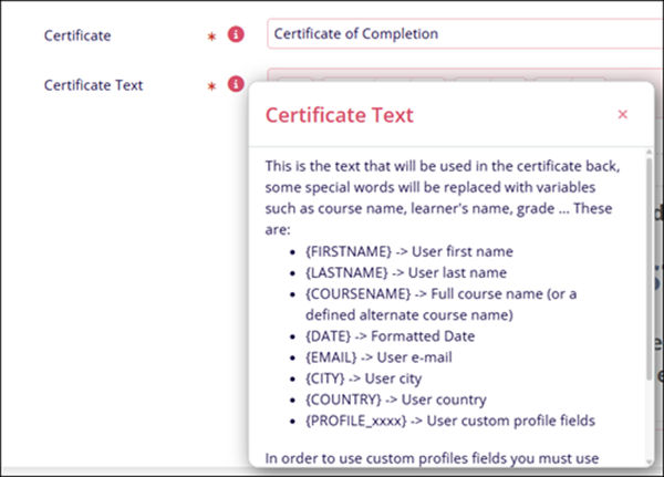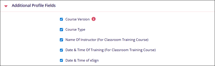 - Enable or disable the visibility of Additional Profile Fields on the certificate by