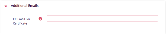 - In the Additional Emails section, specify a comma-separated list of CC email addresses in the CC Email For Certificate field. These email addresses can be individual or general.