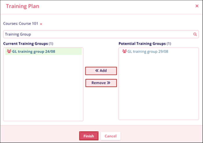 - Select a training plan from the Current Training groups section and click on the Remove >> button.