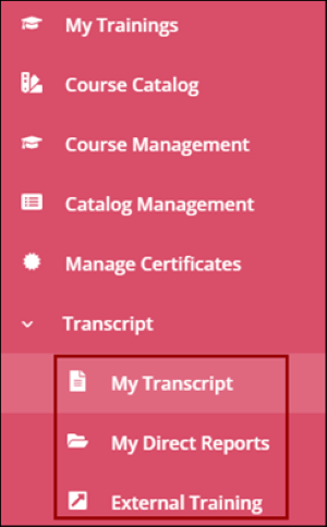 Transcript is a training log or history of the courses that are assigned to a user and/or his/her self-enrolled courses.