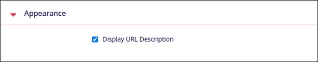 Appearance Name Description. Display URL Description Enable this setting to view the URL Description.