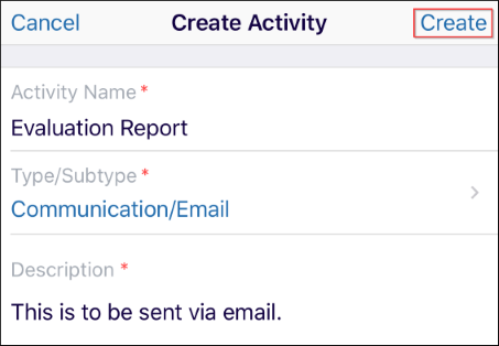 - Once the activity is successfully created, it is displayed on the main page of the Activities tab.