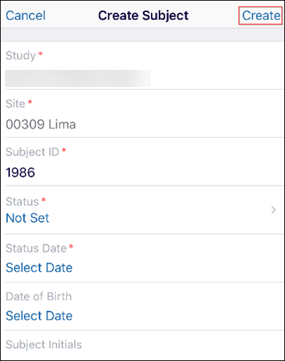 Subject ID*: Enter a value in the Subject ID field.