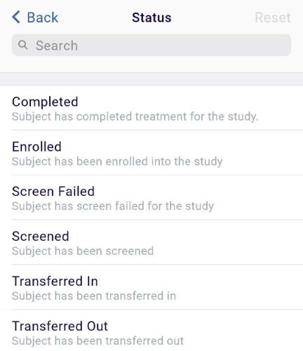 Search for a specific status by entering the term in the search box.