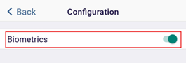 - Activate the Biometrics setting by clicking the toggle switch. When enabled,