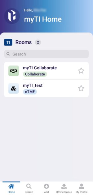 When users log in to myTI, the home page displays all the TI Rooms they have access to. From here, users can quickly navigate to different rooms to perform tasks, review content.