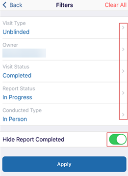 To apply filters, sort criteria, and search for a specific visit, follow the steps below.