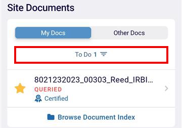 The My Docs section displays documents that are certified by the user. Click the To-Do button to apply another filter and view the documents with other available statuses.